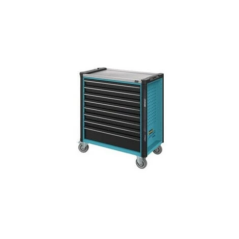 surface de rangement et de travail agrandie en acier inoxydable · Interfaces intégrées dans le plan de travail pour accessoires · Protection de bords à droite sur les quatre coins avec une protection contre les chocs · Position latérale du château pour une meilleure utilisation · Verrouillage à 2 étages · Verrouillage central et verrouillage de sortie réciproque pour risque minimal de basculement · 40 kg de charge par tiroir · Masse totale statique 1000 kg · 2 roulettes de direction avec double arrêt · Version : 7 tiroirs de petite taille B.696x T.398x H.77mm et 1 tiroir grand B.696x T.398x H.162mm. Marque: HAZET. Marque: HAZET